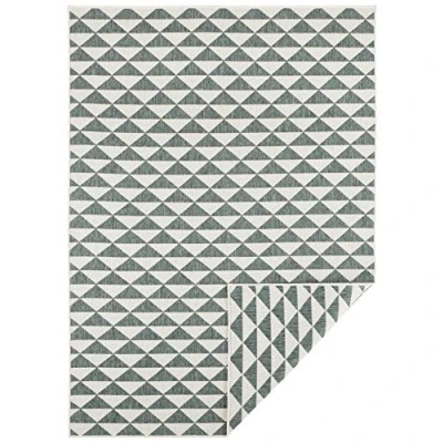 One rug - two colour variations. By simply turning the rug on both sides gives a different look. The modern geometric design can be integrated into many different interior and exterior furnishings without being intrusive. A colour-matched edging on all four sides of the reversible rug rounds off the overall picture perfectly. Thanks to its robust texture, the Tahiti reversible rug from the Twin Supreme collection by bougari can be used both indoors with underfloor heating and outdoors under moisture and UV radiation - making it a versatile everyday companion. The indoor and outdoor rug is made from 100% polypropylene – synthetic fibres, which are known for their special durability and durability as well as light in everyday care. Even stubborn dirt can be easily removed with a damp cloth, commercial carpet foam or even a pressure washer. Technical data: Material - 100% polypropylene, total height - approx. 5 mm, total weight: approx. 1350 g/m², available sizes: 80 x 150 cm, 80 x 250 cm, 80 x 350 cm, 120 x 170 cm, 160 x 230 cm, 200 x 290 cm Box contents: bougari indoor and outdoor rug, flat weave reversible rug Tahiti (80 x 150 cm, 100% polypropylene, durable and easy to clean, UV and moisture resistant, suitable for underfloor heating), green and cream