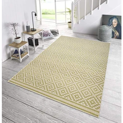 bougari Indoor and Outdoor Rug, Polypropylene, Green Cream, 80 x 200 cm