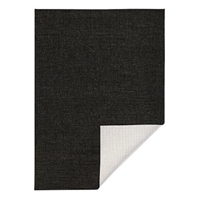 One rug - two colour variations. By simply turning the rug on both sides gives a different look. The simple plain design can be integrated into many different indoor and outdoor furnishings without being intrusive. Thanks to its robust texture, the reversible rug Miami from the Twin collection by Bougari can be used both indoors with underfloor heating and outdoors under moisture and UV radiation - making it a versatile everyday companion. The indoor and outdoor rug is made from 100% polypropylene – synthetic fibres, which are known for their special durability and durability as well as light in everyday care. Even stubborn dirt can be easily removed with a damp cloth, commercial carpet foam or even garden hose. A colour-matched edging on all four sides of the reversible rug rounds off the overall picture perfectly. Box contents: bougari indoor and outdoor rug, flat weave reversible rug Miami 80 x 150 cm, black and cream