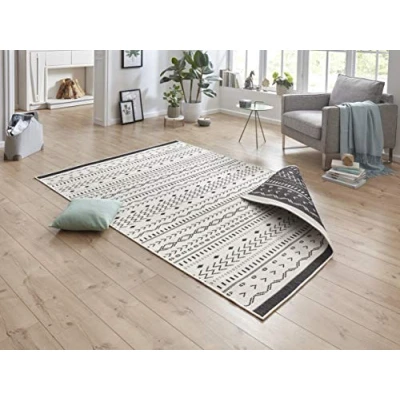 bougari Outdoor Rug Flat Weave Reversible Cuba (80 x 150 cm, 100% Polypropylene, Durable and Easy to Clean, UV Moisture Resistant, Suitable for Underfloor Heating Black/Cream