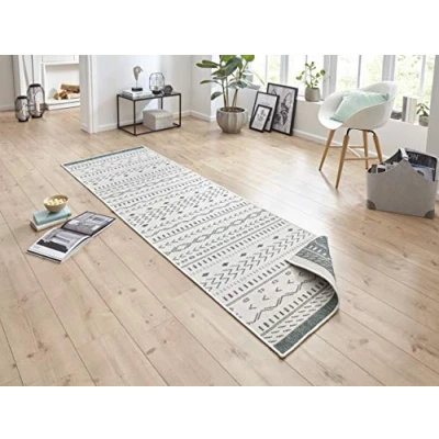 bougari Outdoor Rug Flat Weave Reversible Cuba (80 x 350 cm, 100% Polypropylene, Durable and Easy to Clean, UV Moisture Resistant, Suitable for Underfloor Heating), Green Cream