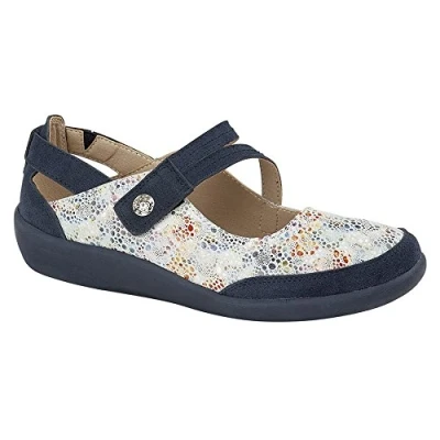 Boulevard Ladies Super Comfy Wide Fit Velcro Casual Shoes (7, Navy/Multi)