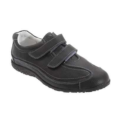 Boulevard Leather Fulfit Twin Touch Fastening X Wide EEE Fitting Trainer Shoes Black Leather, Ladies UK 7 / EU 40