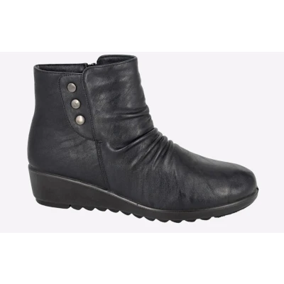 A stylish choice for the upcoming seasons, these Boulevard Toulon women's ankle boots are constructed in a synthetic ruched upper, with stud detailing for additional visual appeal. A slight wedge adds an elevated look whilst a warm fleece lining ensures feet are kept toasty. - Synthetic upper - Zip fastening for easy on / off wear - Stud detailing - Fleece lining for warmth - Durable rubber outsole