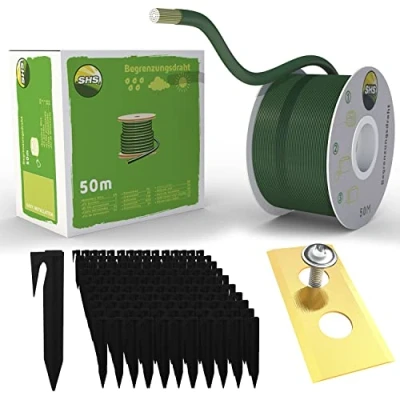 Boundary cable from Rasenfreund & Play packaging 50 m long, flexible cable for easy installation Set includes 150 ground spikes Lawn like colour: green International products have separate terms, are sold from abroad and may differ from local products, including fit, age ratings, and language of product, labeling or instructions., Manufacturer: Rasenfreund