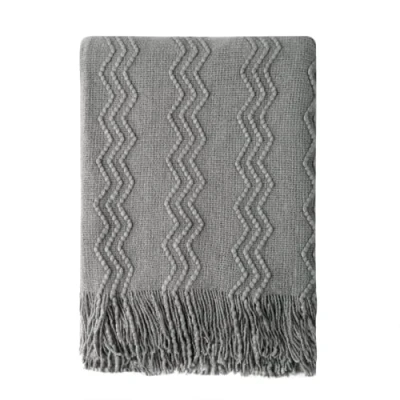 BOURINA Textured Solid Soft Sofa Throw Couch Cover Knitted Decorative Blanket, Dark Grey, 127x152cm