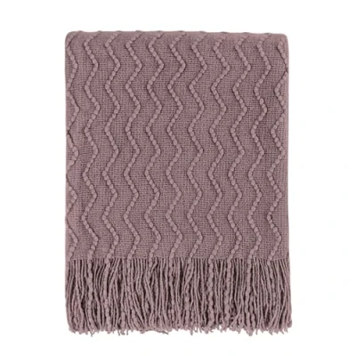 BOURINA Textured Solid Soft Sofa Throw Couch Cover Knitted Decorative Blanket, Lavender, 127x152cm