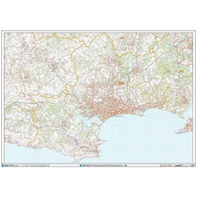 A High Quality Postcode Wall Map. Showing the Entire BH Postcode Area, with Precise Boundaries and Clear Postcode Labels on a Detailed Map Background. A0 Size - 1189mm x 841mm Art quality 120 gsm paper
