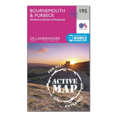 Bournemouth & Purbeck Map Weatherproof Wimborne Minster Ringwood Ordnance Survey OS Landranger Active 195 England Walks Cycling Days Out Maps Adventure