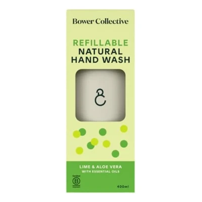 Bower Collective Natural Hand Soap Starter Pack, Lime & Aloe Vera Liquid Wash, Reusable Dispenser with 400ml Refillable Bathroom Soap, Eco Friendly Handwash