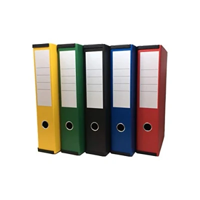 Box file with strong spring clip for holding contents secure The metal finger ring allows for easy retrieval Index on inside cover for noting contents stored. Spine label for easy identification of contents Suitable for Foolscap & A4 documents Each box contains 5 files: Colour: Yellow, Green, Black, Blue & Red. Individual external box dimensions in mm: (H) 375 x (W) 80 x (D) 245 approx.