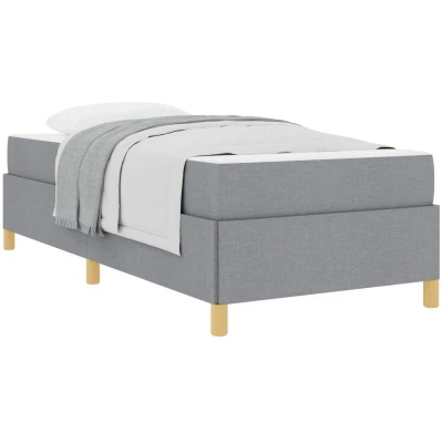 ManoManoGeneral description This modern bed frame blends style and practical features easily, making it perfect for today’s chic bedrooms. It’s designed for those who love sleek looks, adding a trendy touch to your sleep space. With its smooth feel and minimalist finish, it gives off a polished yet easy-going vibe that goes well with any decor while providing comfort for a good night’s sleep. Technical specifications Colour: Light grey and white Material: Fabric Overall dimensions: 193 x 90 x 55 cm (L x W x H) Mattress size: Single Has slatted frame: Yes Mattress material: Foam Assembly required: Yes EAN: 8721288299963 SKU: 3398899 Included Components 1 x Box spring bed Strong wood frame for reliable support Included synthetic foam mattress for a comfy sleeping experience Features / Function / Design Loads of storage space with compartments to keep essentials organized Simple design with straight lines and a compact shape Care & Maintenance Dust regularly with a soft cloth Clean with warm