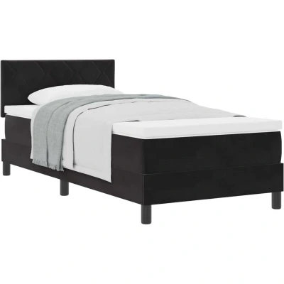 ManoManoGeneral description This strong Box Spring Bed with Mattress blends function and modern looks perfectly, making it a top choice for contemporary bedrooms. Its neat lines and soft velvet texture add a touch of class and warmth to your sleeping space. The bed’s comfy layers and multi-zone mattress provide excellent support, guaranteeing a refreshing rest each night. Enjoy sinking into a dreamy embrace every evening with this beautifully crafted bed that enhances your bedroom's vibe. Technical specifications Colour: Black Material: Fabric Overall dimensions: 203 x 100 x 88 cm (L x W x H) Mattress size: Twin Max number of people: 1 Mattress material: Foam Assembly required: Yes EAN: 8721158212672 SKU: 3339220 Brand: vidaXL Compatibility and accessories Complete Bed Set includes: 1x Bed frame 1x Headboard 1x Mattress 1x Mattress topper Installation Assembly required for setup. Usage Perfect for any bedroom setup, the bed’s sleek look fits a range of interior styles. Adjustable headboard