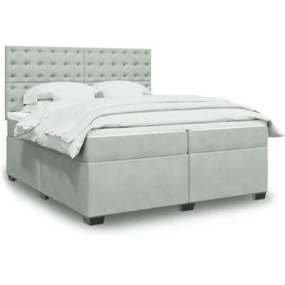 Box Spring Bed with Mattress Light Grey 200x200 cm Velvet Vidaxl