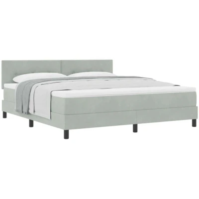 Box Spring Bed with Mattress Light Grey Super King Velvet Vidaxl