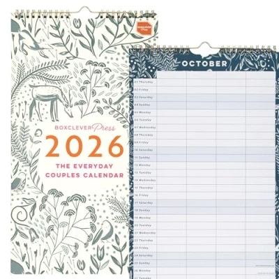 Boxclever Press Everyday Couples Wall Calendar 2026. Slimline 2026 runs Jan Dec'26. Stunning with 4 Column Layout. Family measures: 22 x 39 cm