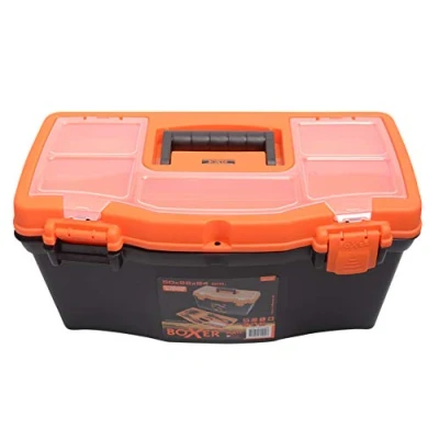 Boxer® 20 Tool Box with Lid Storage 50x26x24 cm Heavy Duty PP Plastic Removable Insert Handle Black & Orange