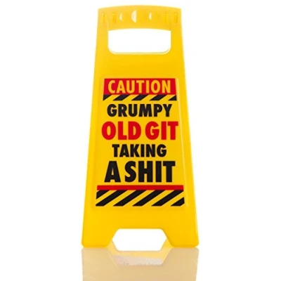 Boxer Gifts DK1008 Caution Grumpy Old Git Taking A Shit Desk Yellow Desktop, Office Warning Sign