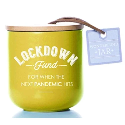 HILARIOUS STOCKPILING FUND JAR – Had enough of COVID-19? Start saving for the next worldwide pandemic with this hilarious novelty money saver Jar! STYLISH AND HIGH QUALITY - This high quality ceramic jar with solid wooden lid is an affordable yet classy take on traditional money tins and boxes. Sturdy and modern, with a minimalist look, this is the ultimate gift for fun-loving friends and family! FUNNY SENTIMENT - Stylish white text reads “Lockdown fund – For when the next pandemic hits”, giving this classy ceramic pot a humorous twist! THE PERFECT NOVELTY GIFT - Complete with attractive gift tag (held on with a high quality leather strap), this novelty money jar is the perfect gift for lockdown loonies on their Birthday, or at Christmas as a Secret Santa gift!