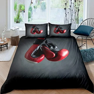 Boxing Bedding Set Sports Theme Comforter Cover For Boys Adult Men,Boxing Gloves Pattern Duvet Games Room Decor Fighting Competition Pugilism Quilt King Size Red Gray