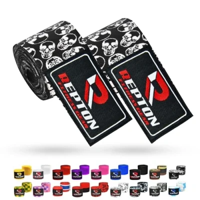 Boxing Hand Wraps for Men Cotton Gloves with Hook & Loop Strap Thumb Elasticated Bandages Wrist Support tape Great MMA, Muay Thai, Kickboxing Unisex Adult Pair (Black Skull)