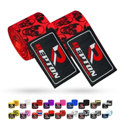 Boxing Hand Wraps for Men Cotton Gloves with Hook & Loop Strap Thumb Elasticated Bandages Wrist Support tape Great MMA, Muay Thai, Kickboxing Unisex Adult Pair (Red Skull)