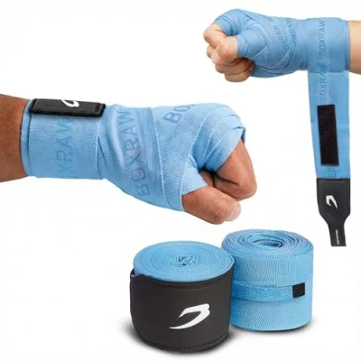 BOXRAW Professional Hand Wraps Boxing MMA Adults Elasticated Bandages with Rubberised Straps & Free Carry Case (Blue 4.5m)