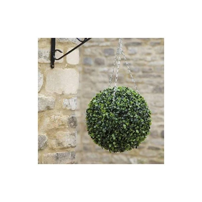 General description This 40cm faux topiary ball is perfect for enhancing your garden's aesthetic. It can be used in borders, pots, or as a hanging decoration, providing a realistic touch without the need for maintenance. Technical specifications Size: 40 cm UV resistant Weather resistant Compatibility and accessories Includes a removable hanging chain Usage Can be hung or placed in pots Ideal for borders and garden decoration