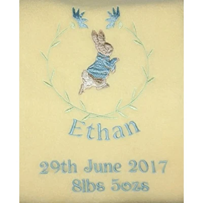 IMPORTANT NOTE: If you select NAME ONLY and then request extra text to be added below the design - THIS WILL NOT BE EMBROIDERED. To have up to 2 additional lines of text embroidered below the design in addition to the name above the design you need to select PLUS TEXT BELOW DESIGN when customising your blanket. Our gorgeous Little Rabbit super soft fleece blankets would make a wonderful gift or keepsake for any new born baby, individually embroidered to your specifications they will be treasured for many years to come.
