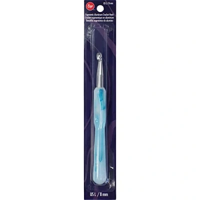 Boye Anodized Aluminum Crochet Hook with Ergonomic Acrylic Handle, 8 mm, Light Blue