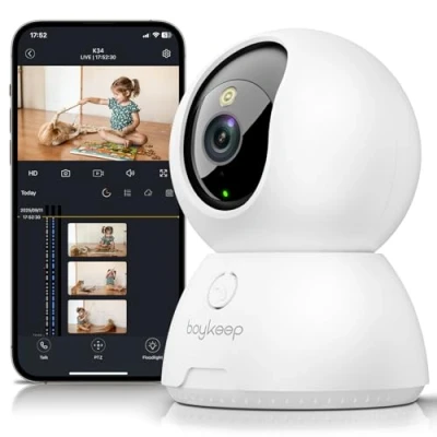 【Two-Way Audio, Real-Time Protection】The Boykeep indoor security camera integrates two-way audio and live monitoring, allowing real-time viewing through the app. This baby monitor with camera and audio ensures accurate monitoring of your baby, pets, and home. With clear two-way audio and one-touch calling, you can comfort the elderly, interact with family, or keep your pets company—ensuring instant family communication and protection. 【360° Coverage, Smart Tracking】The 360 camera offers a panoramic view with a 110° vertical tilt, covering every corner without blind spots. This 2K HD video camera features motion detection and smart tracking, automatically following moving people, pets, or vehicles to capture important moments clearly. You can also set specific monitoring zones for enhanced efficiency, making it perfect for use as a dog camera with phone app. 【Privacy Mode】 Our home cameras indoor feature a privacy mode that allows users to remotely turn off the camera via the mobile app, ensuring personal privacy is never compromised. With simple and secure operation, you can confidently prevent privacy leaks while maintaining full protection. This feature makes it an essential part of your surveillance & security cameras setup, providing complete peace of mind at home. 【Full-Color Night Vision】Boykeep indoor cameras for home are equipped with full-color night vision, providing clear video even in low light up to 33 feet. This ensures seamless nighttime monitoring without missing details. Whether day or night, enjoy 24/7 clear surveillance, providing peace of mind around the clock. 【Dual-Band Wi-Fi, Multi-Device Sharing】This Wi-Fi camera supports 5G and 2.4GHz dual-band, adapting to your network to reduce delays and ensure smooth video. The Boykeep app lets you connect up to 4 devices, easily monitoring different areas and sharing with family. Compatible with Alexa, it offers a smarter, more convenient monitoring experience—ideal for baby camera monitor needs. 【Flexible Storage Options】Boykeep surveillance camera includes 12-second free cloud recordings stored for 24 hours, with no SD card or subscription required. You can also use a 256GB TF card (not included) or opt for cloud storage, ensuring secure and convenient video storage for your inside cameras for house. 【Custom Alarm Function】These house cameras with audio and video detect potential dangers and trigger alarms to notify you in real time. If no response, the system connects with Noonlight 911 services, allowing alerts to be escalated to 911 when necessary (requires cloud subscription or separate purchase)., Manufacturer: BoyKeep