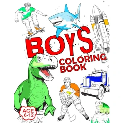 BOYS Coloring Book: Activity featuring Trucks, Cars, Dragons, Vehicles, Sharks, Dinosaurs, Space, Monsters, Planes Kids Ages 6, 7, 8, 9, 10, 11, 12, and Teens!
