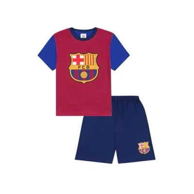 FC Barcelona Short Pyjama Set. These pyjamas come in a soft cotton and include a short sleeved top with a stunning Barcelona design and shorts featuring the club crest and an elasitcated waist. These will make a superb gift for any young Barca fan. Available in a variety of sizes - 5-6 Years, 6-7 Years, 7-8 Years, 8-9 Years, 9-10 Years, 10-11 Years, 11-12 Years, 12-13 Years, 13 Years, 14-15 Years, 15-16 Years Officially licensed FC Barcelona product exclusively designed for The Pyjama Factory Keep Away From Fire - Low Flammability to EN 14878