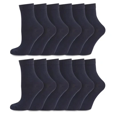Boys Girls Childrens Kids Back to School 12 Pairs Cotton Rich Plain Ankle Socks Sizes 9 12, 12½ 3½, 4 5½ (7 10y 3½ Jnr, Navy)