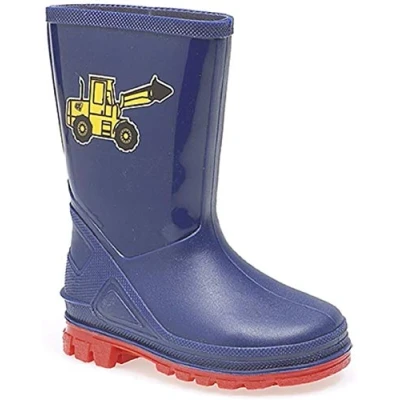 WATER RESISTANT PROTECTION: Keeps your child's feet dry and comfortable during puddle play and active outdoor adventures. DIGGER DESIGN: Features an engaging digger theme, perfect for adventurous boys who love to explore and play outside. AVERAGE 16CM LEG: Offers specific sizing for optimal fit and protection around smaller legs, enhancing comfort during play. PVC SOLE AND UPPER: Constructed with robust PVC for reliable durability, ensuring these wellingtons withstand active outdoor use. COMFORTABLE TEXTILE LINING: Provides a soft interior for little feet, ensuring lasting comfort throughout extended periods of wear.