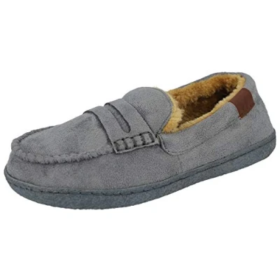Boys New Hampshire Faux Suede Fur Lined Moccasin Slippers Shoes Size 1 6 (UK 1, Grey)