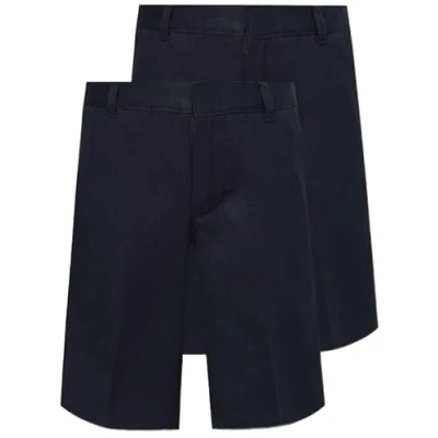 Boys Twin Pack School Shorts Adjustable Waist Black Grey Navy Ages 2 14y