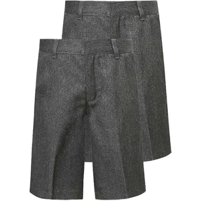 Boys Twin Pack School Shorts Adjustable Waist Black Grey Navy Ages 2 16y