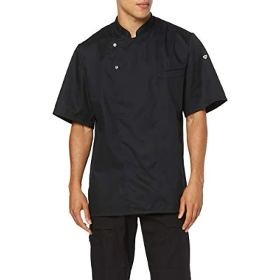 BP 1548 400 32 M, Chef's jacket 1/2 sleeve, sleeve with stand up collar and concealed press stud band 215,00 g/m², fabric blend black, M