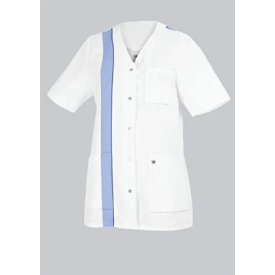 BP 1616 400 11 40n, Women's tunic, 1/2 sleeve, V neck with press stud band 215,00 g/m², fabric blend white/light blue, 14n