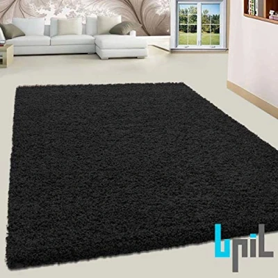 BPIL SHAGGY RUGS SOFT PLAIN Thick 5CM TWISTED PILE ANITSKID SMALL MEDIAM LARGE AREA (BLACK, 60X110CM)