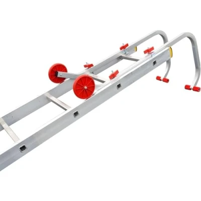 General description Our universal Quick Build Ladder Roof Hooks convert any ladder into a roof ladder in seconds. Unlike other roof hooks that take at least 15 minutes to fit, our hooks take mere seconds, saving you time on the job. They simply clamp onto your ladder with ultra-strong J bolts and large wing nuts, requiring no tools for installation. The hooks feature extra-large, shatterproof red wheels for effortless rolling up the roof and a big arc hook designed to keep you safe on all roof pitches. The end of the hook is finished with soft rubber bungs to prevent damage to the roof ridge. Technical specifications Lightweight alloy construction Compatible with single section ladders only Not suitable for use with extension ladders Can be used with a single section removed from an extension ladder Comes with full fitting instructions Other information Flat pack design for easy storage and on-the-job assembly Free no quibble lifetime guarantee ISO 90001 accredited manufacturer