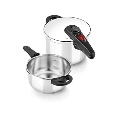 Made from 18/10 stainless steel with high wear resistance; ergonomic handle and handle made of heat-resistant Bakelite Diffuser base that achieves the optimal temperature quickly, suitable for all types of cookers, including induction Two levels of cooking and depressurization device It has 4 safety systems: 3 pressure safety systems, 1 opening locking system. Sliding closing system with opening and closing with lid and body insert. Product Amazon Exclusive