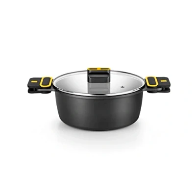 CASSEROLE DAILY USE: It is a lightweight and easy to use casserole, optimal for daily use that allows you to cook efficiently, practical and healthy. CAST ALUMINIUM: Made of 100% recyclable cast aluminum allows cooking with very little or even without oil. This material makes it a robust pan with optimum durability. NON-STICK SURFACE: Made with a PFOA-free non-stick coating that prevents food from sticking to the bottom, achieving delicious recipes. FULL INDUCTION BOTTOM: 4.5 mm thick diffuser bottom with magnetic stainless steel disc 18% chrome, joined by an impact system. Full induction base compatible with all heat sources including induction. Induction base diameter: 23 cm. Oven-safe: body oven safe up to 220°C without glass lid or silicone handles.