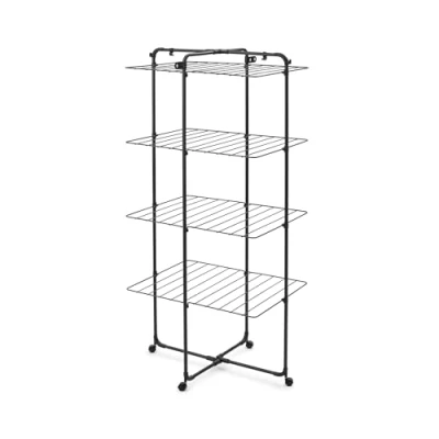 30m drying space – This large tower drying rack holds over three machine loads of laundry! Its vertical design fits sheets, towels, and clothes while saving floor space Flexible 4-level design – Fold or unfold the drying levels to suit small or large laundry loads, the frame also allows half-open use for compact clothes drying on one side Mobile & practical design – The four sturdy wheels make this portable drying rack easy to rotate and move around the home, even when loaded with laundry Drying rack with hooks – Comes with two corner hooks and clip holders for hangers, giving additional space for shirts, delicates, and small laundry items More sustainable choice – The Brabantia HangOn Tower Drying Rack is Cradle-to-Cradle Certified (Silver level), made with 38% recycled materials, 96% recyclable, and supports WeForest tree planting