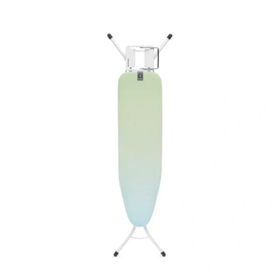 Compact & Easy to Use: Perfect for those quick ironing tasks or smaller laundry loads, this lean 110x30cm ironing board is exceptionally lightweight, making it easy to set up swiftly and store away without hassle. Stable & Safe Ironing: Enjoy wobble-free ironing with its solid four-legged steel frame (22mm ∅) and protective non-slip caps. Enhanced safety comes from a child lock to prevent accidental closing and a transport lock for secure, compact folding. Ergonomic & Flexible: Promotes comfortable, back-friendly ironing by easily adjusting to your ideal working height (69-96cm). The steam iron rest is suitable for both left and right-handed users and conveniently holds irons up to 13.5cm. Smooth & Fair Ironing Surface: Enjoy smooth results with the 100% Fairtrade certified cotton cover in Soothing Sea, complete with a resilient foam layer. Its perfect 'crease killer' fit is ensured by a cord binder and stretch system for easy ironing. Sustainable & Guaranteed: A responsible choice featuring a 100% Fairtrade certified cotton cover and Cradle-to-Cradle Silver certification for circularity. Enjoy long-term peace of mind with Brabantia's extensive 10-year guarantee and service.