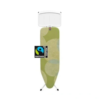 Flexible design - This ironing board B has a steam iron rest which can be set for left or right-handed use (for irons up to 13,5 cm) Adjustable ironing - The high-quality ironing board is adjustable in height (69-96 cm) and has protective non-slip caps Crease killer - The cover is suitable for irons and steam irons, comes with cord binder and stretch-system and is made of 100% cotton with a resilient 2 mm foam layer High-quality standard - If something unexpected happens with this Brabantia product, we offer a 10-year guarantee and service A sustainable choice - This ironing board is made of 37% of recycled materials & 95% is recyclable after use