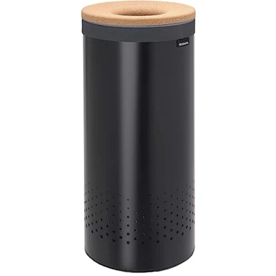 Brabantia Laundry Bin Cork Lid Portable Bag Inside Quick drop Opening Basket with Ventilation Holes Non Scratching Bottom Corrosion Alloy Steel Resistant Matt Black 35L
