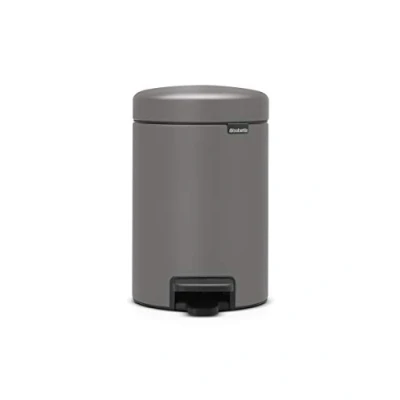 Brabantia NewIcon Pedal Bin 3 L (Mineral Concrete Grey) Soft Closure Bathroom Rubbish Bin, Removable Inner Bucket + Free Binbags