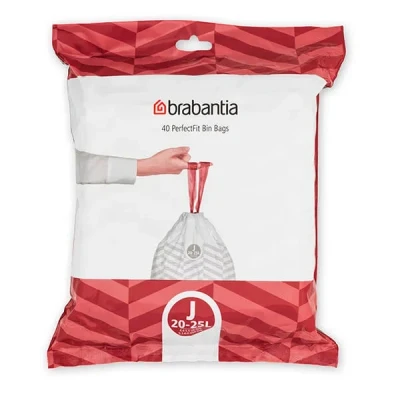 General description This dispenser pack contains 40 Brabantia Perfectfit Bags, specifically designed to fit Brabantia Bo 'J' coded bins. These bags are color-coded for easy matching with your bin, ensuring a neat and tidy appearance. Technical specifications Material: High-quality HDPE Capacity: 20-25 litres Pack size: 40 bags Compatibility and accessories Designed for Brabantia Bo 'J' coded bins Installation Easy to fit without unsightly overwrap Quick and mess-free removal and sealing